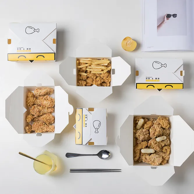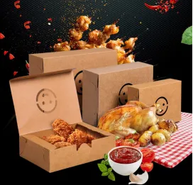 La boîte de poulet frit est un type de récipient d'emballage en papier de poulet frit spécialement conçu pour l'industrie de la restauration rapide. La boîte de poulet frit est fabriquée en carton de qualité alimentaire résistant aux températures élevées et aux huiles, imperméable et étanche, adapté au chaud et au froid et facile à emballer. C'est une boîte à poulet frit pratique avec une bonne étanchéité et une bonne isolation, qui peut maintenir efficacement la fraîcheur et la température du poulet frit. La boîte de poulet frit produite par l'usine Zemeijia prend en charge l'impression personnalisée et convient aux scènes de plats à emporter, de restauration et de fête.