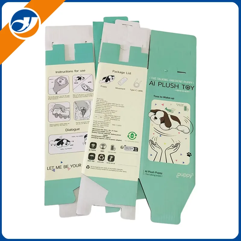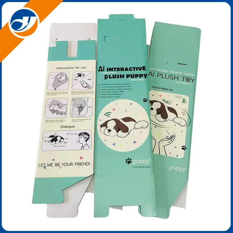 Il s'agit d'une boîte d'emballage en carton ondulé personnalisée conçue spécifiquement pour le jouet en peluche pour chiot. Conçue à la fois pour la protection et la narration de la marque, cette boîte découpée et imprimée en couleur allie un design fonctionnel à des matériaux respectueux de l'environnement, ce qui en fait la solution d'emballage idéale pour les jouets en peluche. Fabriqué à partir de carton ondulé recyclable, il comporte des instructions d'utilisation claires, une liste de colis détaillée et un message de marque pour améliorer l'expérience de déballage tout en s'alignant sur des pratiques durables.
