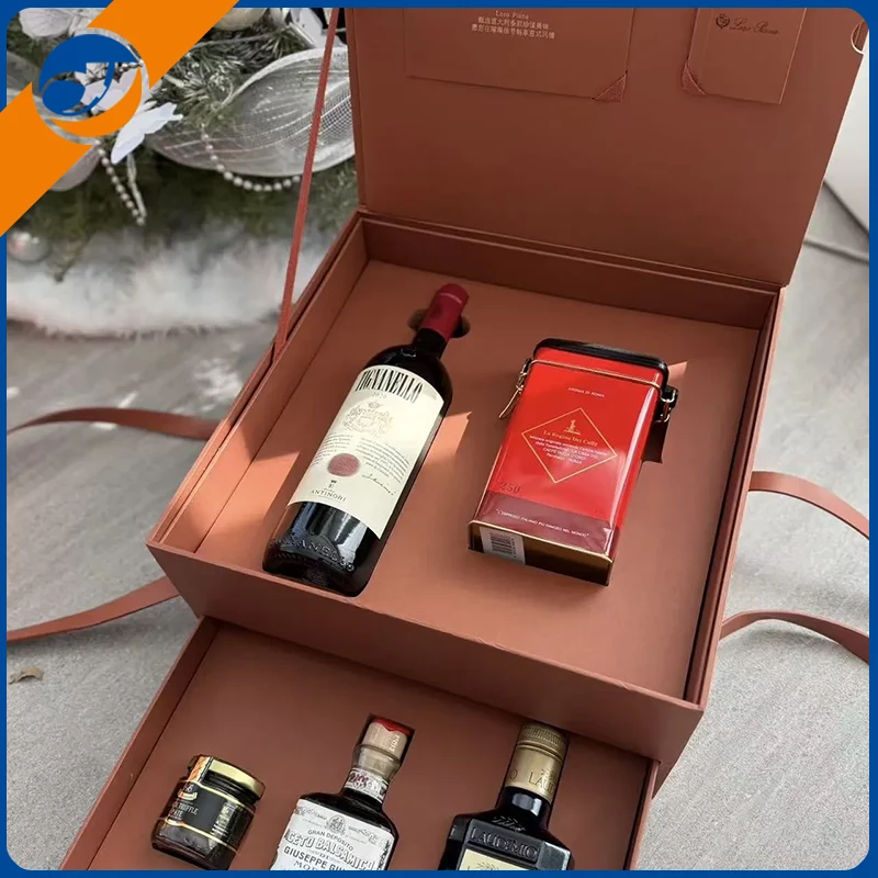 Emballage de boîte à vinUtilise du carton 100% recyclable, du bois certifié FSC ou des matériaux biodégradables pour réduire notre empreinte carbone.Emballage de boîte à vinPrend en charge les tailles personnalisées pour s'adapter précisément à différentes formes de bouteille. La doublure deEmballage de boîte à vinUtilise du liège naturel, du coton recyclé ou de la mousse biodégradable, en remplacement des plastiques traditionnels pour assurer un transport sûr tout en protégeant la planète.